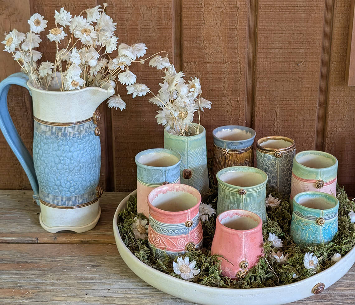 Shop for hand-made ceramics by Carrie DeVee ceramics at Toe River Crafts. photograph by Sue Wasserman/Explore Burnsville