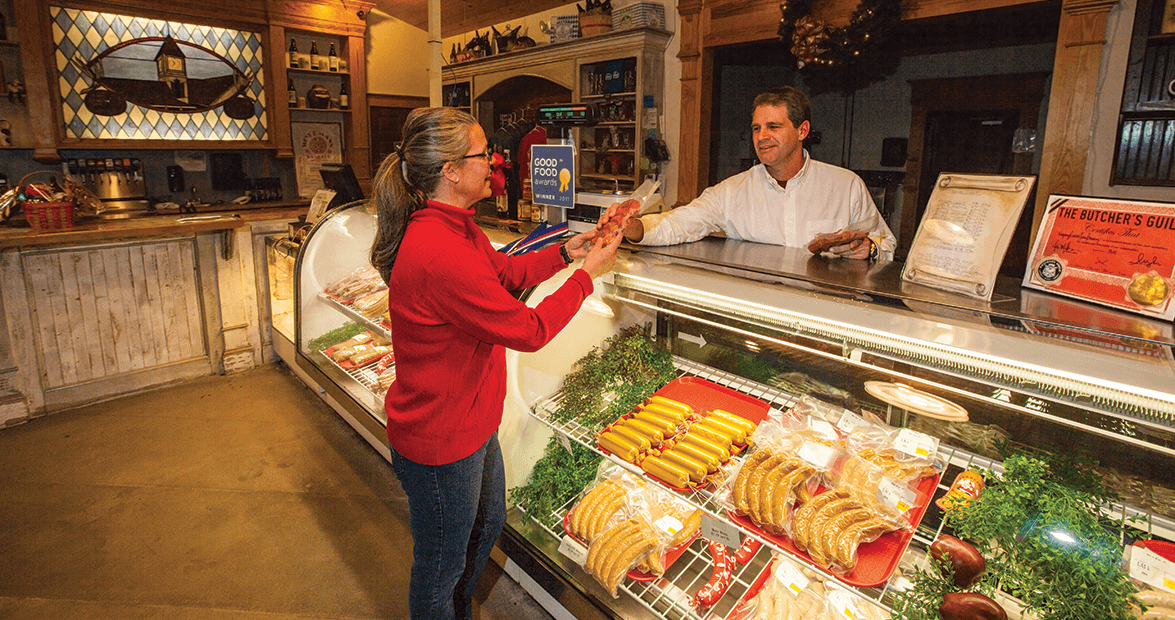 Visitors are welcome to peek into Meusel’s butchery downstairs, where the salty aroma of the smokehouse is unmistakable.
