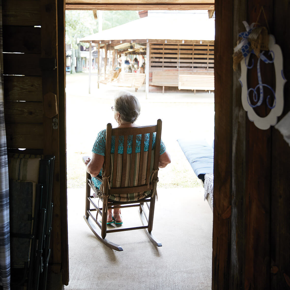 Taylor now lives only a five-minute drive from Rock Spring, but she still spends the entire two weeks of camp meeting in Tent 131. It’s in the same spot as the one that her father, Joe, bought for $50 before she was born. When a fire in the 1970s destroyed it, Taylor and her family rebuilt. Now, she’s added Bible-inspired signs to the front porch that read, “Love always,” “Listen,” and “Forgive and Forget.” And she spends much of her time during camp meeting catching up with her Rock Spring neighbors while sitting in the same rocking chair that her mother, Ruth, favored at past gatherings. “Everybody tells me I look just like her,” Taylor says.