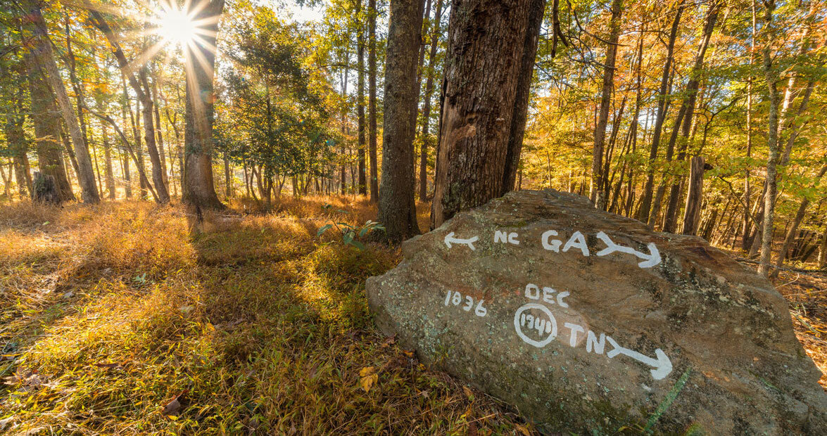 Patterson owns the westernmost piece of land in North Carolina, along with some acreage just across the state line in Georgia (where his house is). All of it touches another state line: Tennessee’s. There’s a small brass disc at the exact point where all three of those states meet. It sits next to a fencepost, underneath some pines and oaks, at the edge of a rolling pasture. If you didn’t know it was there, you’d miss it. Patterson calls it “the corner,” and he’s painted a rock showing where each state is. Admittedly, it’s not much to look at.