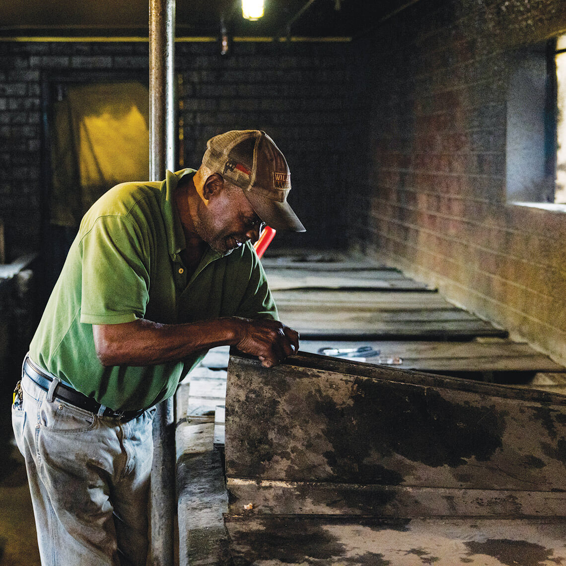In the smokehouse, Martin readies the pits for a long night of smoking pork. It’s how Wilber did it before he died in 2021, and it’s a tradition that’s being carried on today. photograph by Anna Routh Barzin