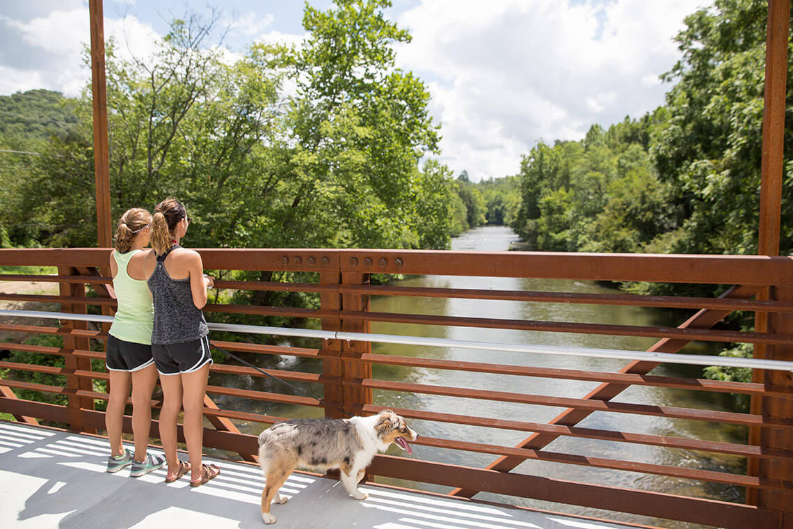Casual walkers, cyclists, and families enjoy the riverside Jackson County Greenway. Photography courtesy of Discover Jackson County