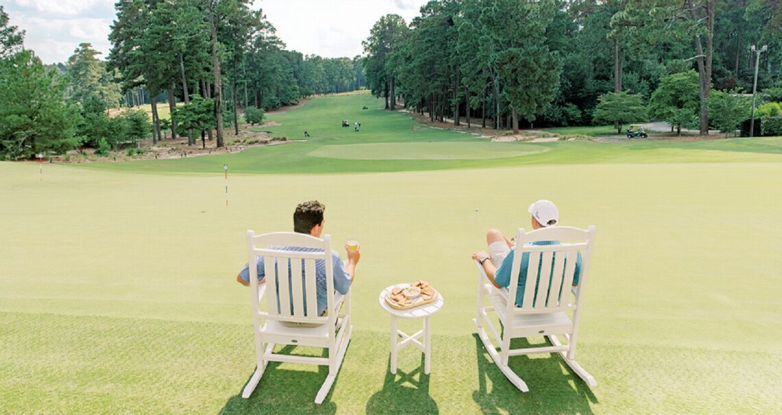 Swing easy, hit hard. This slogan was made famous by Julius Boros, the ’50s and ’60s golf great who once served as head pro at the Mid Pines Inn and Golf Club, where you’ll find Pop’s Lounge. You could add to the saying, Relax like a pro. Because when you step off the 18th green at Mid Pines, you’ll find chairs overlooking a golf course that hasn’t changed much since Donald Ross designed it in 1921 — not to mention delicious drinks, pimento cheese, and a signature burger named for Boros.