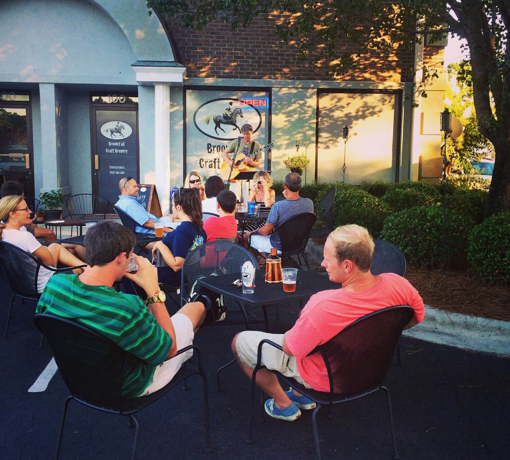 Head south on Kerr Avenue toward North Market Street for less than five miles, where you’ll find Broomtail Craft Brewery in Dutch Square Industrial Park. The taproom is small but inviting, and there’s outside seating under the trees and the friendly face of co-owner Lisa Owings pulling the taps behind the bar. Broomtail offers 11 beers on tap, including their specialty Catch of the Day, which it brews in collaboration with chef Keith Rhodes from Catch restaurant. Catch of the Day is a witbier with a mouthful of exotic flavors like lemongrass and ginger root. Another taproom favorite, its flagship Acerbic Ecstasy, is “an English and West Coast hybrid,” Lisa says. Approaching its one-year anniversary, Broomtail Brewery has something for everybody on tap.