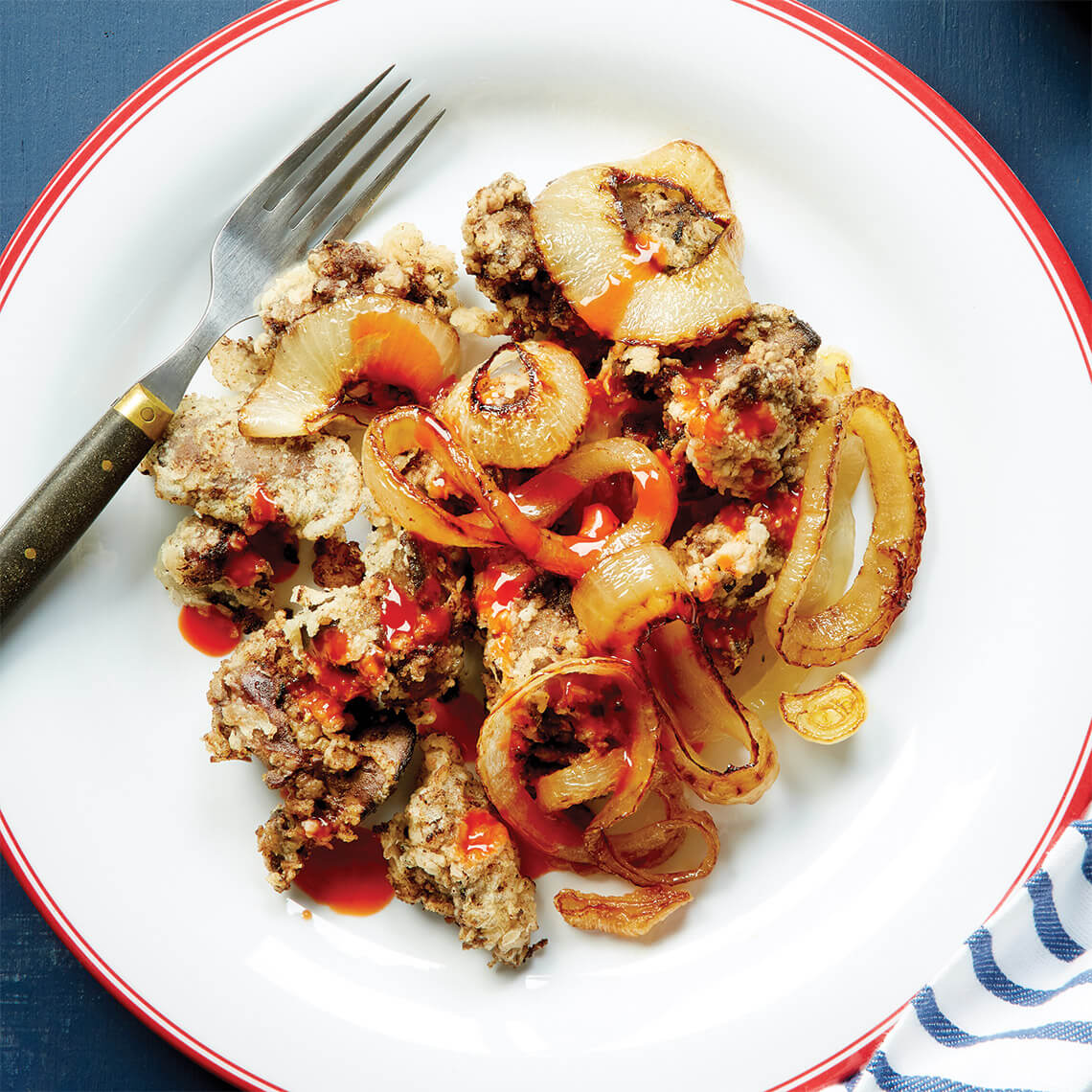 Transfer livers to a paper towel-lined platter and top with cooked onions. Salt to taste. Serve immediately with your favorite hot sauce, if desired.