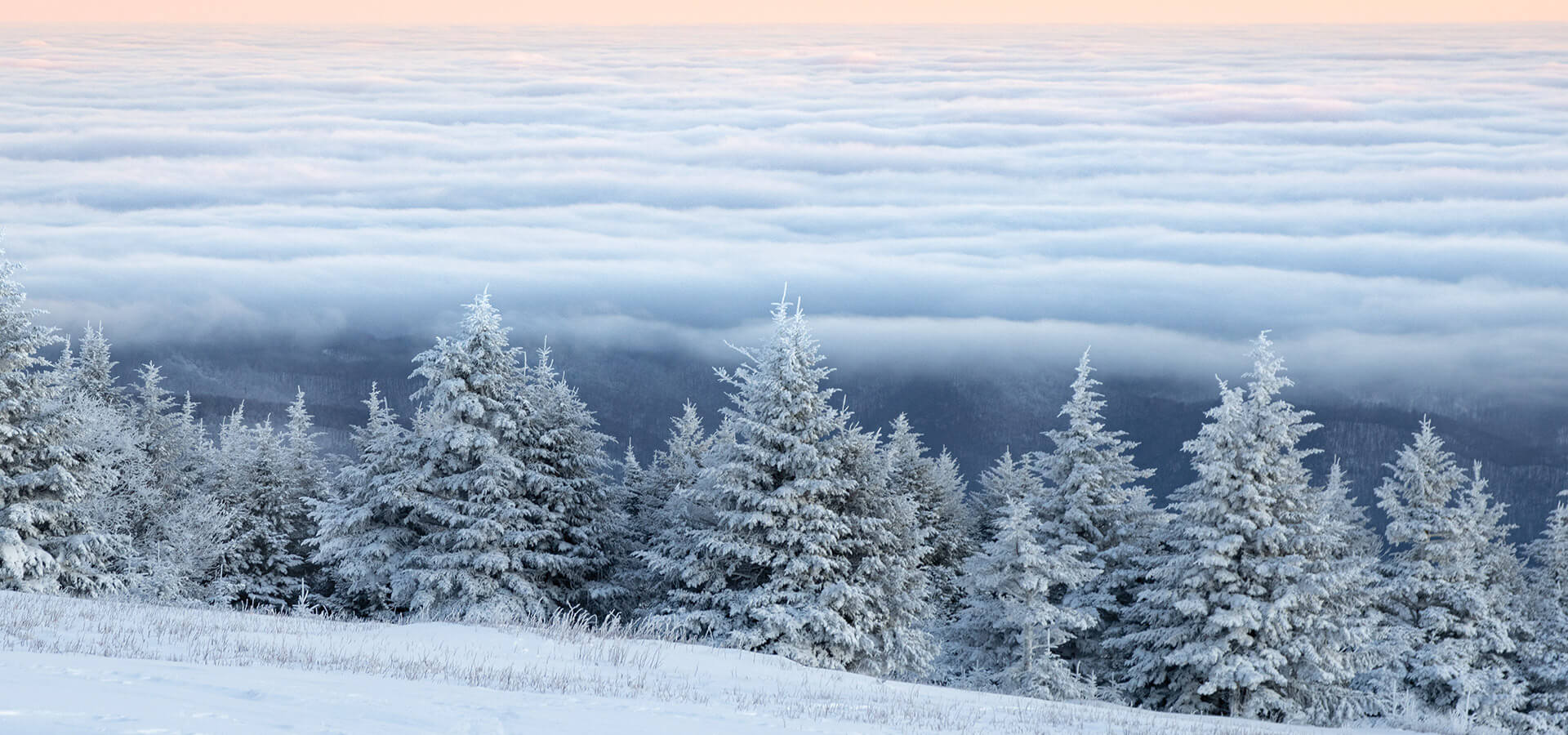 On Roan Mountain, ridges toss and turn between blankets of clouds and snow.