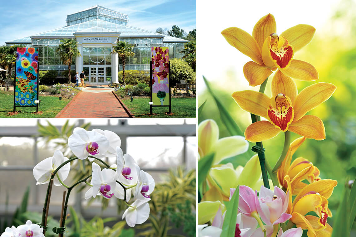 From the tiniest colored buds to dinner plate-size blooms cascading down long green stems, The William H. Williamson III Orchid Conservatory houses a rotating collection of Daniel Stowe Botanical Garden’s more than 2,500 orchids. With glass walls reaching five stories high, the conservatory is a climate-controlled tropical oasis — complete with a waterfall — whose steamy warmth keeps plants (and humans) cozy throughout the coldest months. — Katie King