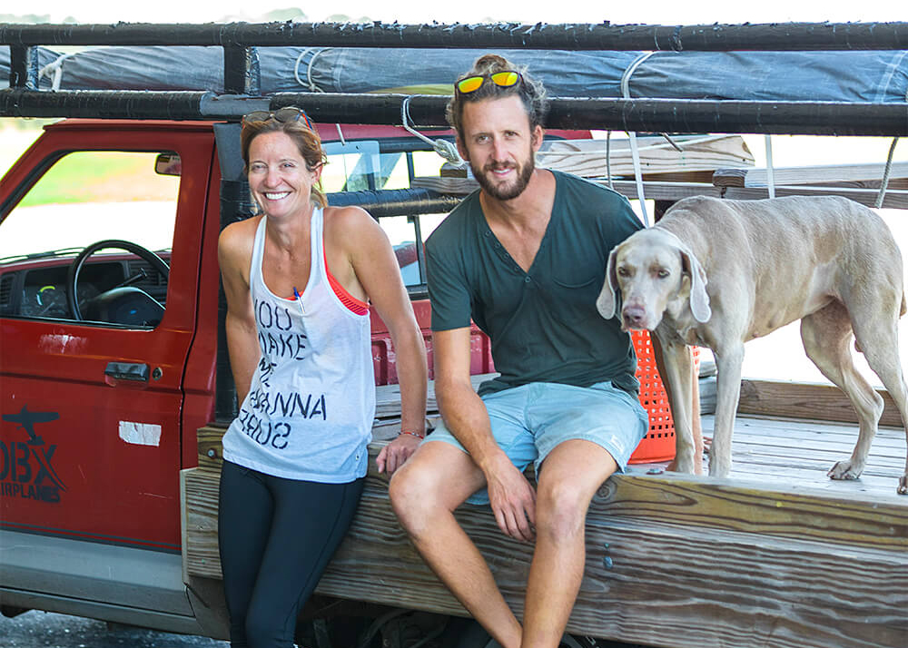 Jenny and Jesse Hawk run a tight ship at OBX Airplanes – with the help of one of the company’s unofficial canine mascots, Birdy. photograph by Baxter Miller