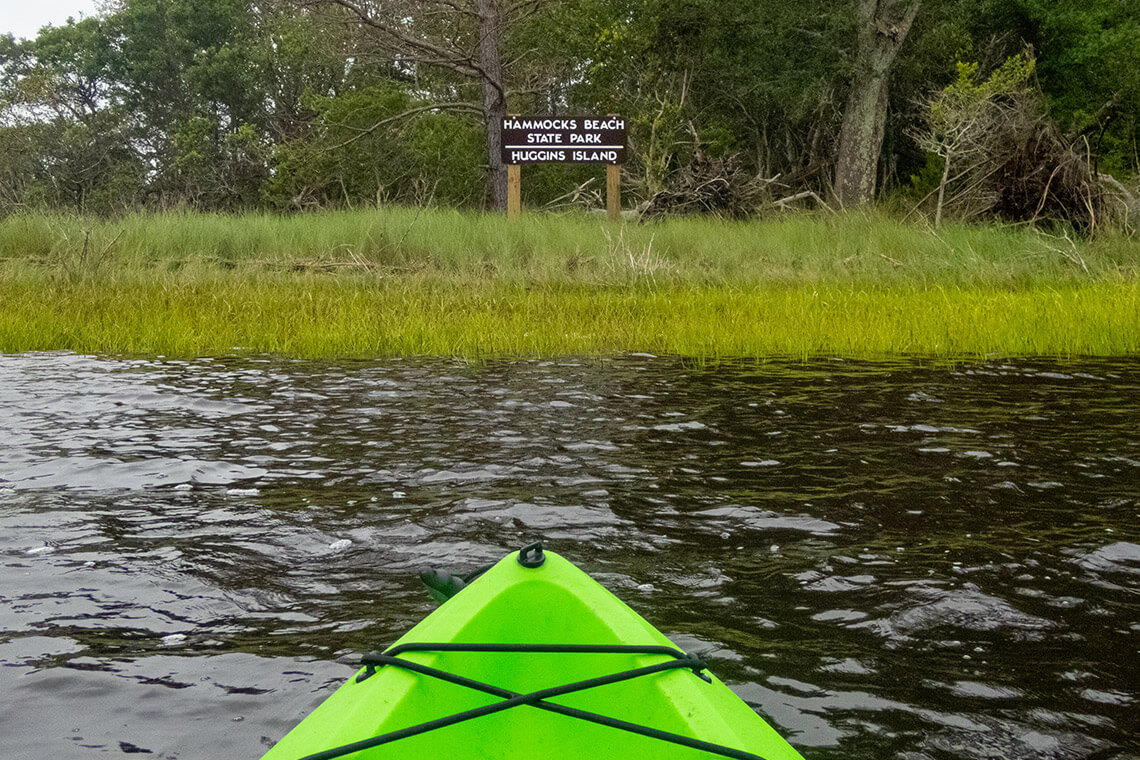 On the Bogue Inlet side of Huggins Island, a Confederate earthwork fort can be seen among a thick brush of live oaks and wax myrtles. Kayakers on the Huggins Island Trail, a six-mile loop for experienced paddlers in Hammocks Beach State Park, can pull ashore and explore the small island — watching for painted buntings nesting in the scrub — or simply circumnavigate it before heading back to the mainland. The trail begins at the park’s visitor center and crosses the Intracoastal Waterway into a marsh before reaching the island, with yellow Carsonite markers indicating the way. Paddlers might spot great and snowy egrets wading among the bright green marsh grass, dolphins splashing in the waves, or green sea turtles poking their noses above the salty water — all while silently floating along. — Rebecca Woltz