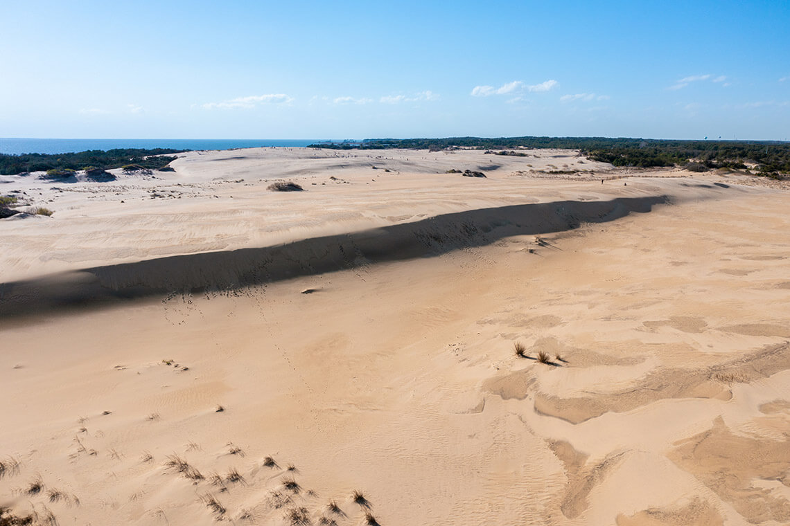 Experience the otherworldly beauty of Jockey’s Ridge State Park on foot — or, thanks to year-round winds, often blowing 10 to 15 miles per hour, via hang glider. photograph by Kyle Little/iStock/Getty Images Plus