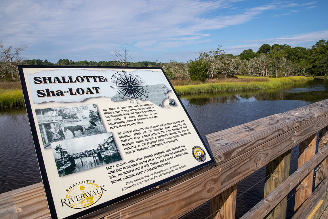 At one time, Shallotte’s eponymous river was at the center of regional trade — a vital passage for barges and sail boats. Today the Shallotte Riverwalk travels a quarter mile along this landmark waterway.