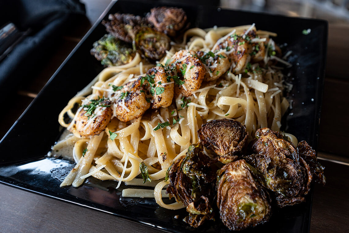 Try the shrimp pasta with Brussels sprouts at Gracious Plates on Main. <br><span class="photographer">Photography courtesy of Franklin & Nantahala TDC</span>