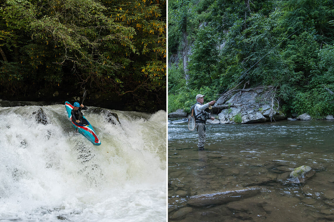 If whitewater kayaking is a little too advanced for you, try fly-fishing for trout in the Upper Nantahala. Photography courtesy of Franklin & Nantahala TDC