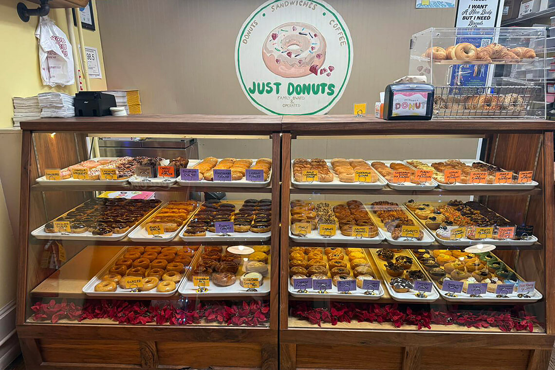 Select a sweet treat (or a dozen) from Just Donuts’ enticing pastry case. Photography courtesy of Franklin & Nantahala TDC