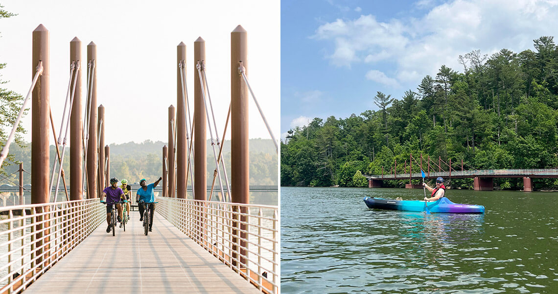 Lake Hickory is a paddler’s dream, but if you don’t have time for a full-blown water adventure, you can still immerse yourself in greenspace by riding or strolling along the Riverwalk. Photography courtesy of Visit Hickory