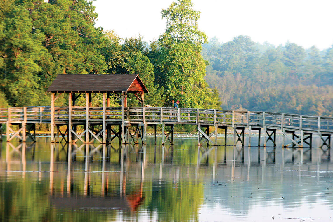 Take a peaceful walk around Pages Lake at Aberdeen Lake Park. Photography courtesy of Visit Pinehurst, Southern Pines, Aberdeen