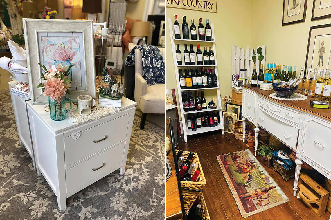 Shop for gifts and furniture at Love You More – Home Decor (left), and for a great bottle of wine at The Watering Can. Photography courtesy of Visit Pinehurst, Southern Pines, Aberdeen