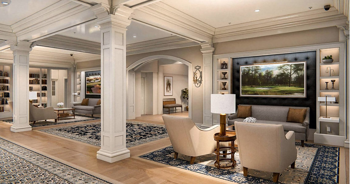 Stroll between the Tuscan-style columns in The Carolina Hotel lobby as you make your way up to your room or over to a meal at the Resort Clubhouse.<br><span class="photographer">Photography courtesy of Visit Pinehurst, Southern Pines, Aberdeen</span>