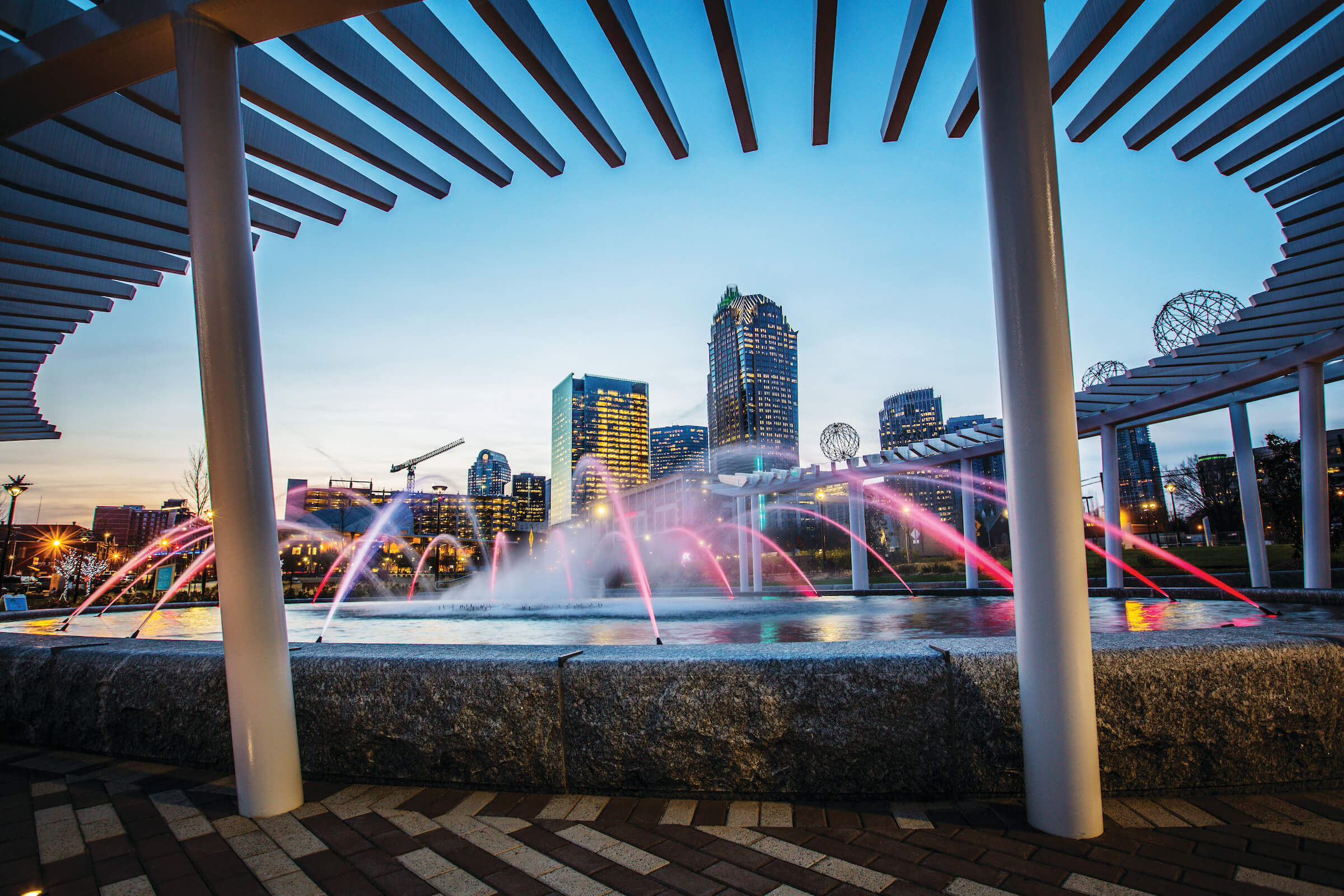 Located conveniently to Uptown, First Ward Park draws families throughout the summer to its splash pad. photograph by Charlotte Regional Visitors Authority